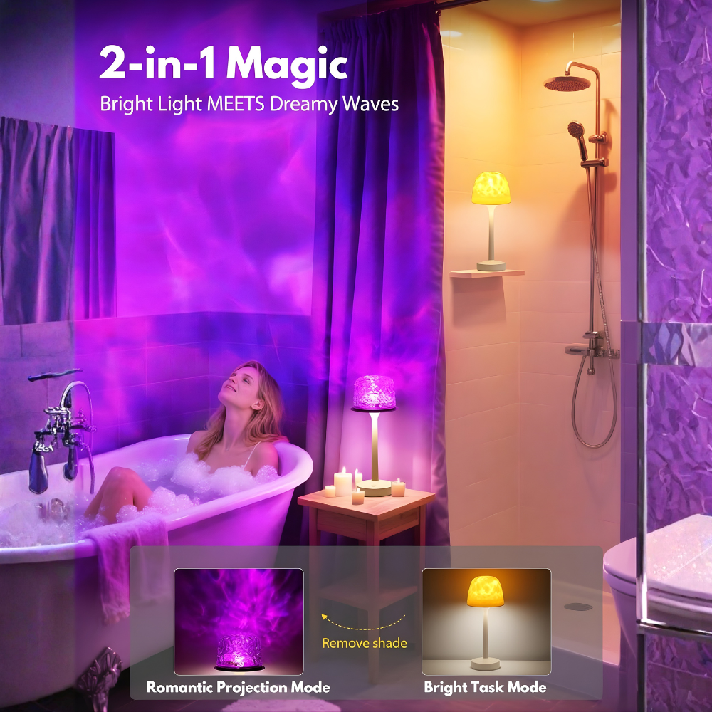 Create a soothing and elegant ambiance with the Elegant Table Light. Designed to mimic the mesmerizing effect of rippling water, this lamp casts soft, fluid light patterns that bring a sense of calm and relaxation to any space. With its high-foot pedestal design, this lamp adds a touch of modern sophistication, making it perfect for bedrooms, living rooms, cafes, and stylish home décor. Whether used as a night light, mood enhancer, or statement piece, this atmospheric lighting fixture elevates any environment with its tranquil, flowing glow.